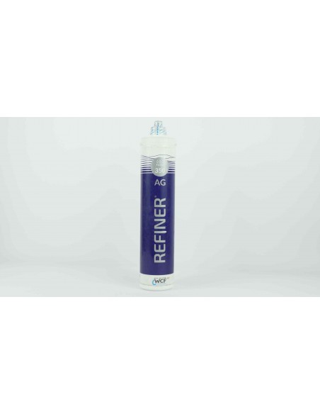 Cartuccia refiner rs 350 ag garantisce un grado di filtrazione di 0,5mcr grazie alla membrana in fibre di polietilene al cabone attivo e alla lega in argento con azione betteriostatica dimensioni altezza 375mm diametro 79mm autonomia 15.000 l