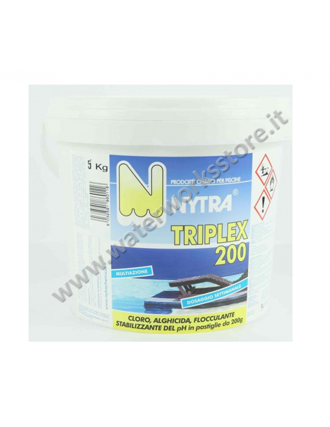 Triplex 200 in pastiglioni da 200g multuazione alghicida flocculante stabilizzante del ph e del cloro
