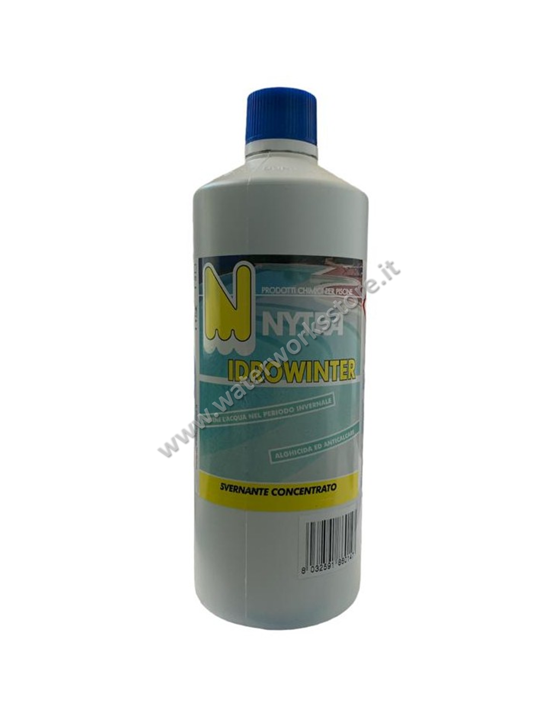 Svernante superconcentrato per evitare la proliferazione di alghe e la precipitazione del calcare durante la stagione invernale. A base di polimeri di ammonio e fosfonati.