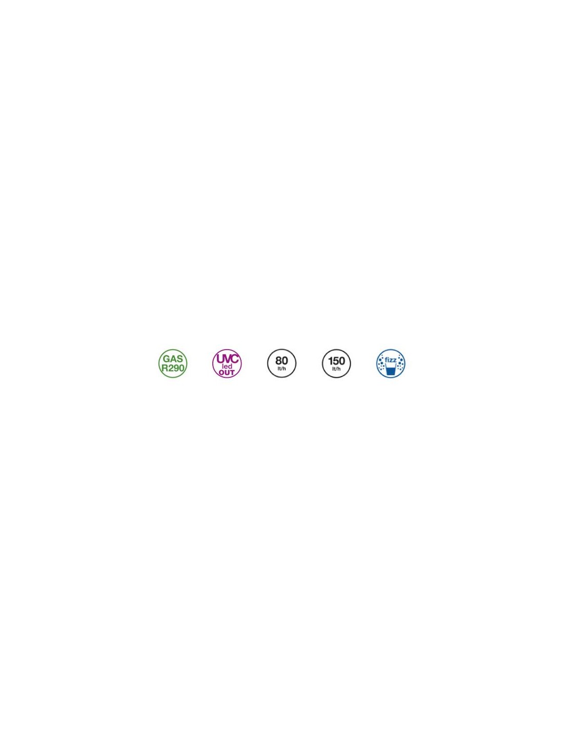 - Banco di ghiaccio ad alto isolamento per una elevata produzione di acqua fredda, liscia e gasata: – 80 lt/ora (45 litri in continuo) – 150 lt/ora (80 litri in continuo).