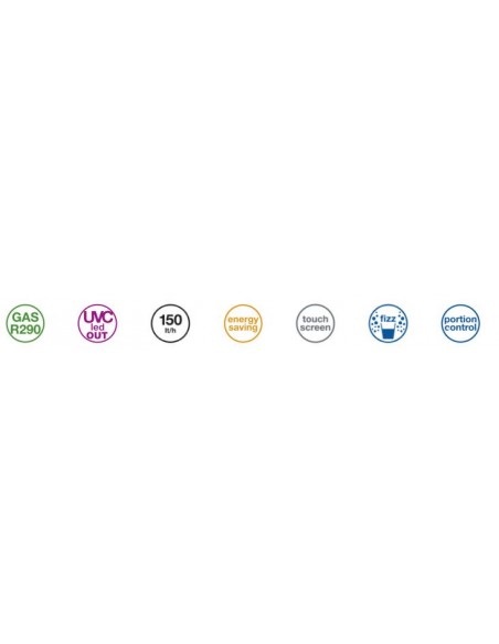 - Banco di ghiaccio ad alto isolamento per una elevata produzione di acqua fredda liscia e gassata: 150 lt/ora (80 litri in continuo) per riempire bottiglie, caraffe, etc.